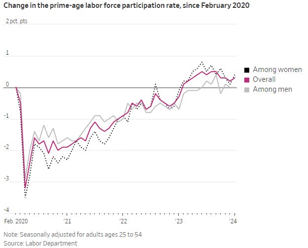 Revisions added 359K jobs to 2023’s total gains, with employment in November and December revised 126K higher. With the revisions, the US economy added an average of 255K jobs per month in 2023, higher than the monthly average of 225K earlier.