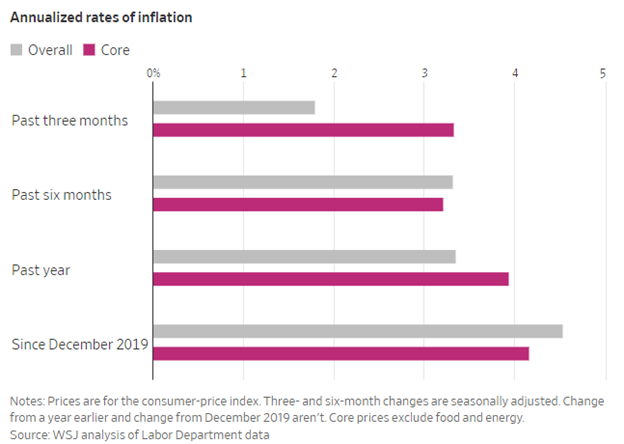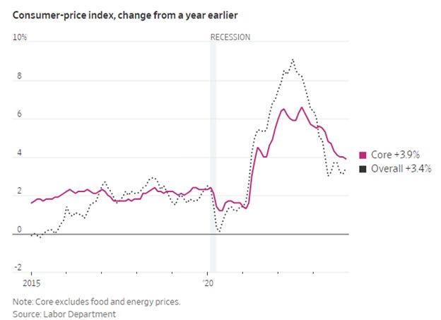 In terms of details on the CPI print, monthly headline CPI was 0.10% stronger than expected at +0.3%, which in turn pushed the year-on-year number up to +3.4%. Meanwhile core CPI, also came at +0.3% for the month, which was in line with expectations, but meant the year-on-year number only slowed by a tenth to +3.9% (vs. +3.8% expected). So, the progress on disinflation is proving slower than hoped, and that’s also evident by just focusing on the last 6 months of data. For instance, on a 6-month annualized basis, core CPI was up from +2.9% to +3.2%, and headline CPI was up from +3.1% to +3.3%.