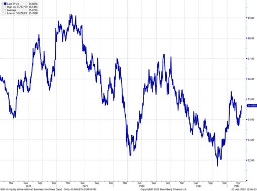 IBM common stock performance was sub-par from 1978 to 1982 despite being a market leader at the time.