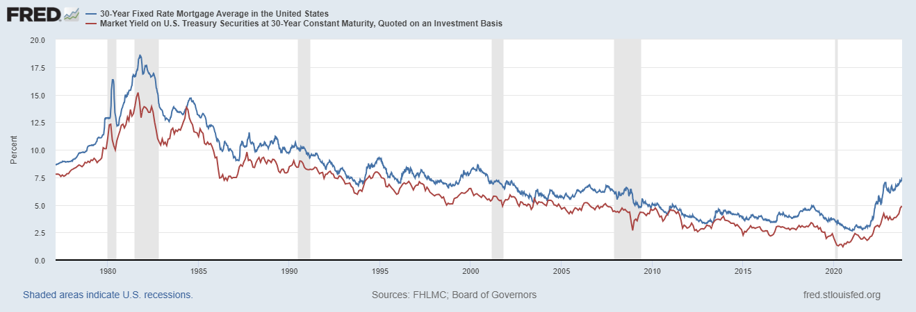 Higher mortgage rates - as we can see over the long term, the 30Y mortgage rates track the 30Y Treasury yields pretty closely, so the affordability of home buyers is impacted.