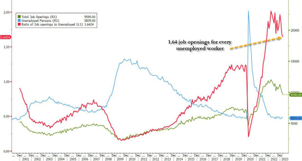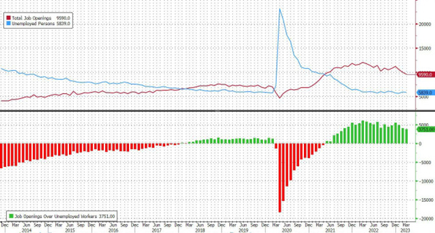 Powell will probably refer to today’s JOLTS report and how the labor market is less tight today compared to last year. Powell’s pet metric shows that there are 1.64 job openings for every unemployed worker, down from 1.67 last month and over 2 at the record high in March 2022. Needless to say, this number still has ways to drop to revert to its pre-covid levels around 1.20, but the trend is now clearly lower.