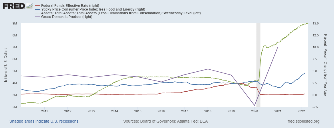 Ok. What can go wrong? ‘Policy error’ is the lingo used by most market participants. It is when the Fed overtightens, which leads to a slower growth phase and perhaps a recession. For context, the last time the FOMC raised interest rates and executed their plan to reduce Balance sheet holdings (BS runoff), they ended up over-tightening ie growth slowed and inflation declined. They ended up reversing course and eased the financial conditions by cutting rates and shoring up the Balance Sheet.